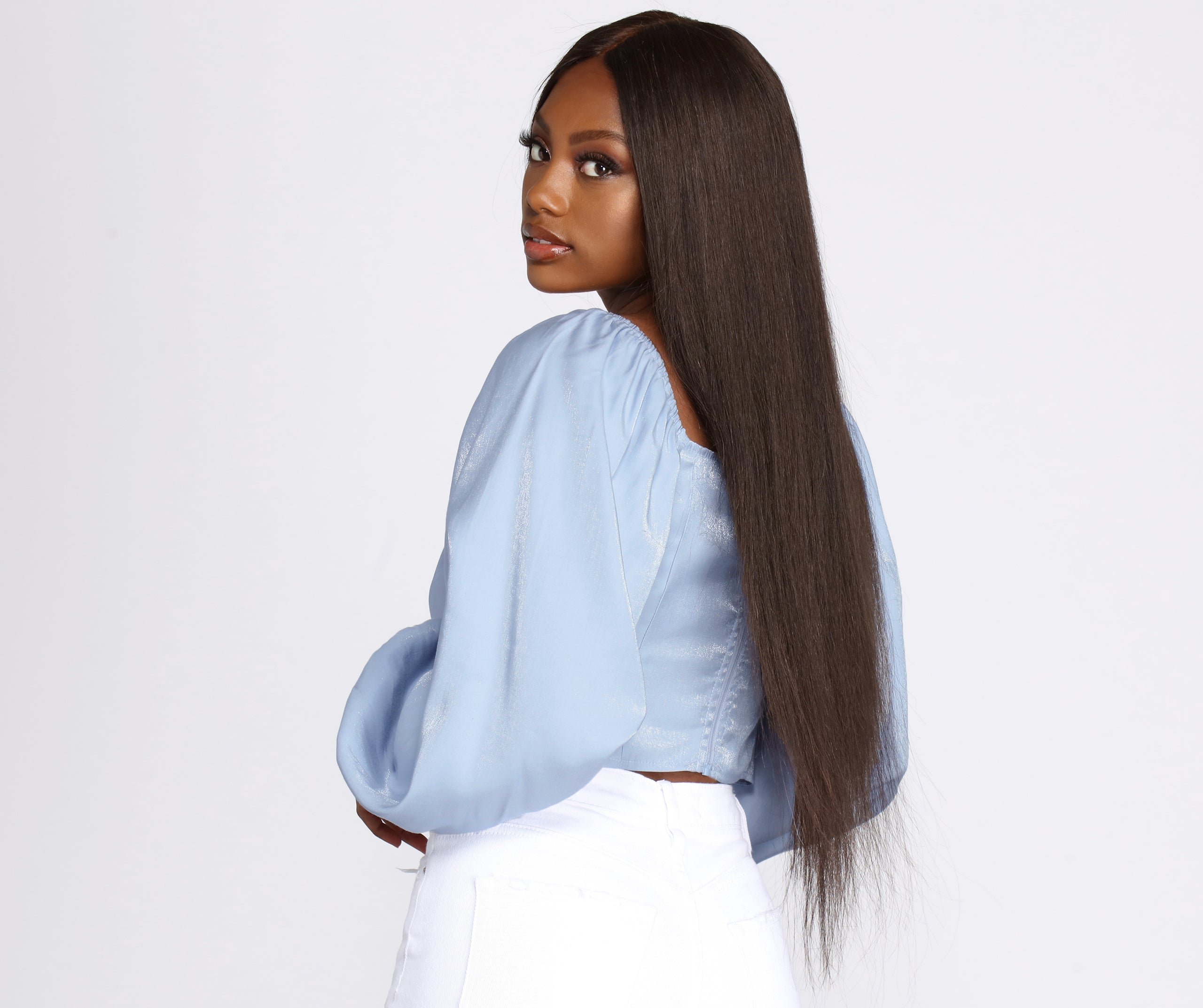 Catch the moonlight on your date night in the most magical way! We are stunned over this beautiful blouse. Pair with high waist denim or a cute lil' mini skirt!