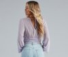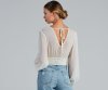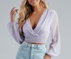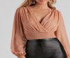 Archieve a dreamy boho-inspired style with this chic woven top! Featuring long peasant sleeves, a surplice v-neckline with tie-back, and a smocked crop hem on sheer-lined woven fabric. Style with flare
