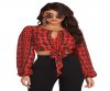 Keep it boho chic in this must have red top! It features a round neckline with a keyhole detail, long wide sleeves with elastic wrists, and a cropped length with a tie front accent. Top is composed of a lightweight woven fabric with no stretch.