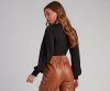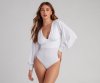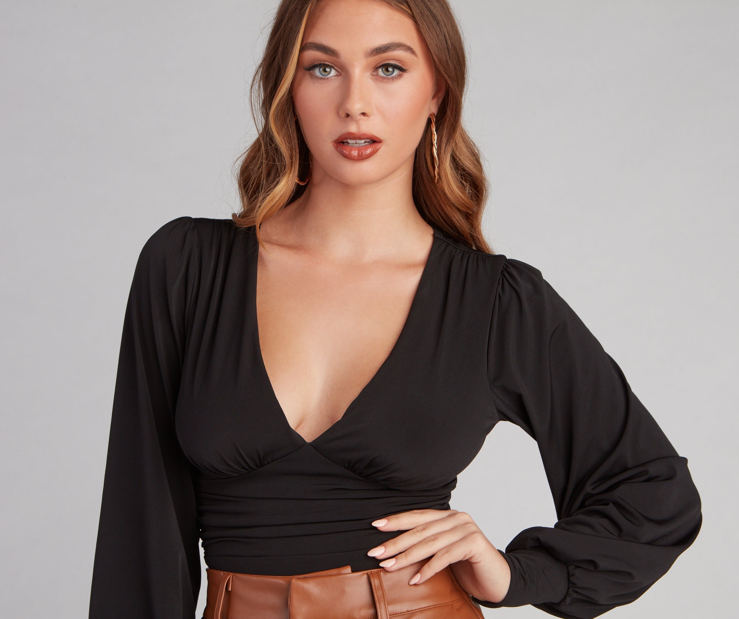 This puff sleeve bodysuit is just a little bit dramatic in the most fashionable way! It features long sleeves, a plunging neckline, dual snap closure, thong-cut bottom, and textured fabric with a moderate stretch. Style with a