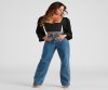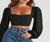 Have daydreams about this corset top? That's definitely a sign it belongs in your closet! It features long peasant sleeves, a square neck, hook-eye closures, flexible boning for a structured fit, and a cropped hem. Composed of crepe-lined fabric with no stretch. Perfect for styling with