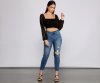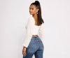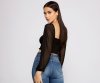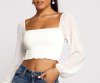 Keep it sweet in a dotted crop top that brings the charm to your brunch outfits. The crop features a smocked bodice with a square neckline, sheer chiffon long sleeves with a dotted print, and a cropped hem. Complete look with