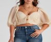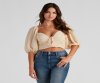 This effortless and chic cropped blouse is a stunning summer staple! It features a sweetheart neckline with a lace-up tie-front design, half-length bishop sleeves, ruched detailing, and a cropped fit. Style with