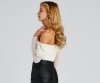 This on-trend cropped corset top will bring the effortless and chic vibes. It features an off-the-shoulder neckline with draped detailing, long sheer sleeves, a corset-designed bodice, and a form-hugging fit. Style this top with