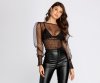 Play around with polka dots! This sheer top is a sexy and playful way to amp up your weekend look! Designed with a boat neckline, puff sleeves that are smocked at the wrists, and a smocked waist band that leads to a mid length hem. Top is composed chiffon material that only stretches at the smocked areas.