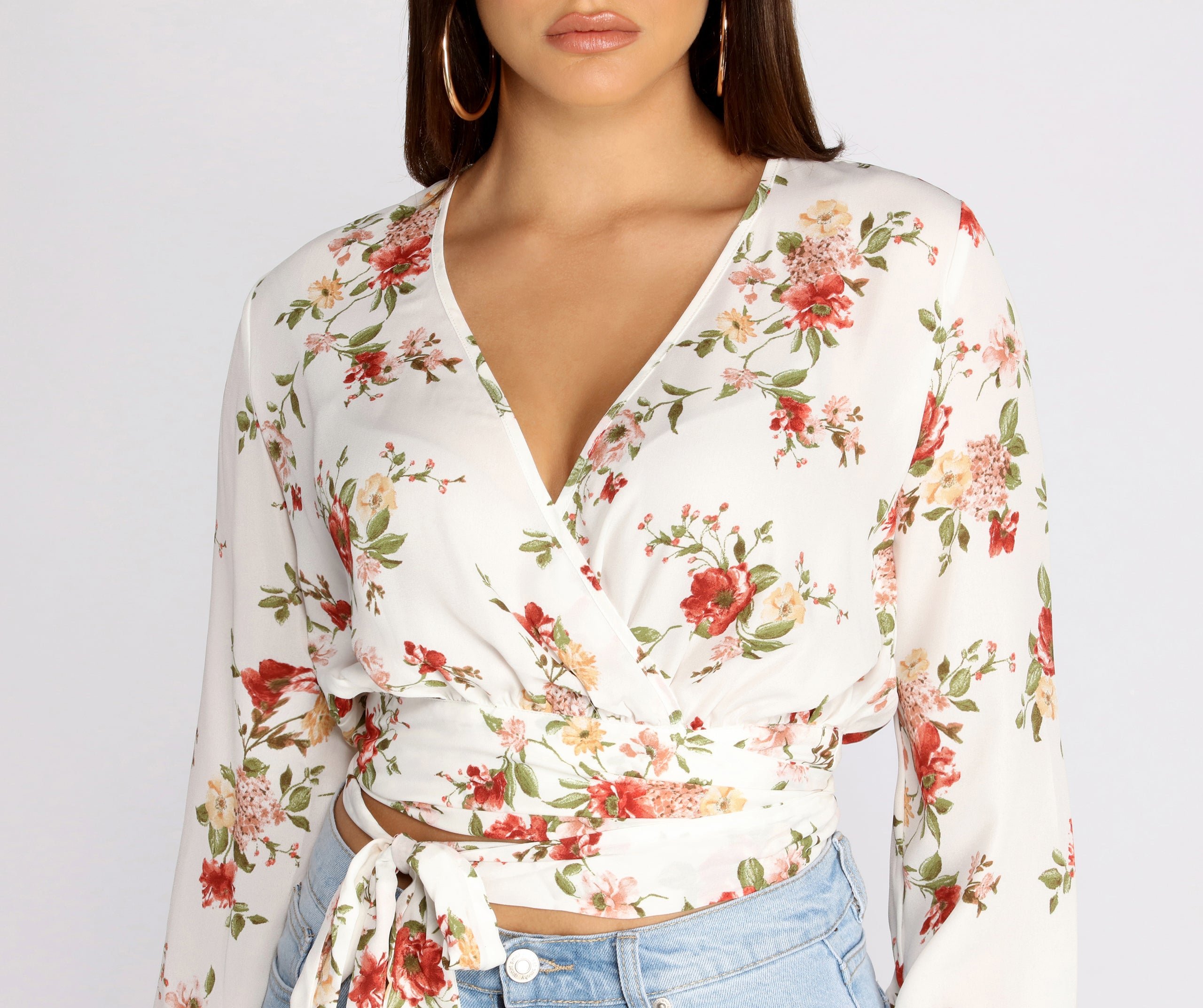 ?Who needs a bouquet when you're wrapped up in this?gorge top? Look adorbs and fresh?by pairing it with some jeans and booties!?