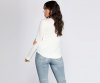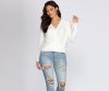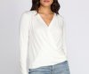 We all need that classic blouse that you can dress up or down. This knit top features long fitted sleeves, a surplice front creating a V neckline and pleated detailing, and a mid-length, relaxed fitting hem. The knit fabric has moderate stretch.