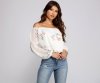Keep it sweet with a floral blouse that lets your beauty bloom. The top features an off-the-shoulder neckline, a floral print, and sheer long sleeves. The top is composed of a chiffon fabric that offers a relaxed fit with minimal stretch. Complete look with high waist jeans and a