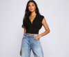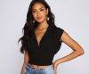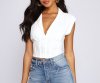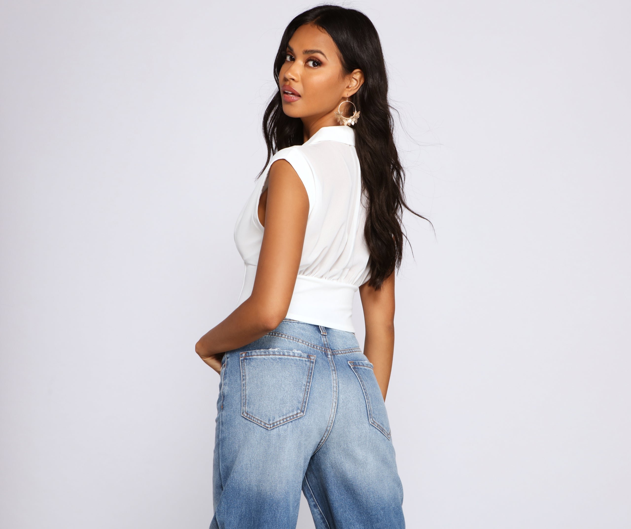 Elevate your wardrobe with this preppy and chic crop top! It features a collared V-neckline, cap sleeves, a corset designed front with hook and eye closures, and a cropped, form-hugging fit. Style this top with