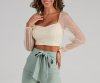 Stay sassy and stun in this gorgeous sweetheart mesh crop top! It features long sheer mesh sleeves with dot detailing and a ruched lined mesh bodice with a cropped hem. Pair with a