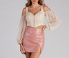 Keep it sleek and fab with a bustier that makes them all take a double take! The bustier features a sweetheart neckline with padded cups, tank-like shoulder straps, and lexible boning that provides structure. The bustier features a cold shoulder accent with long sleeves and?a trendy hook and eye front closure. Bustier is composed of a combination of a lined faux leather fabric and lightweight woven fabric. Complete look with