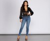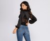 Chic and sleek, this satin lace blouse is perfect for you. It features long sleeves with elastic banded cuffs, a V neckline, center button down detailing, a sheer lace inset under the bust, and a mid-length ruffle hem. The top is composed of a lighweight satin-like fabric with no stretch.