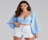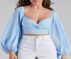 Welcome this chiffon top into your weekly lineup. It features long peasant sleeves, v-neckline, twist front accent, and a cropped hem. Complete the look in sleek faux leather