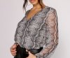to edge up your look. The top features a snake print, a plunging V-neckline, sheer long sleeves, and composed of a semi-sheer mesh fabric that offers a relaxed fit.?