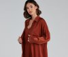 Keep it chic this weekend in this satin tunic for a classy night out! It features long sleeves with button cuffs, a collared neckline, one pocket, button-front closure, and a relaxed scoop hem. Complete the look in the matching slip dress.?