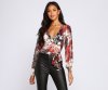 Wrap yourself in a glam top that brings those bohemian vibes! The top features a bohemian-inspired paisley print, a plunging wrap V-neckline, tie-waist hem, and long sleeves. The top is composed of a smooth knit fabric that offers a form hugging fit with a moderate stretch. Complete look with high waist leggings.