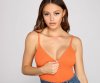 This basic ribbed knit bodysuit is a wardrobe staple! It features a sleeveless V-neckline, spaghetti straps, a partial zip-front, a thong bottom with a dual snap button closure, and a form-hugging fit. Style this bodysuit with