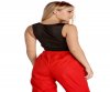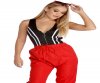 You call all the shots in this sporty black jersey bodysuit! It features a deep V neckline with a zip up front, contrasting piping down the bodice, wide contrasting stripes on the sides with faux silver buttons, and a partial coverage bottom with snap button closures. Bodysuit is semi-sheer with a front lining?and is composed of a jersey net fabric with a moderate stretch.?