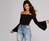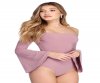 Do it for the bell of it! This cute top has an off the shoulder neckline paired with long, bell sleeves and a thong bottom with a snap button closure. The garment is composed of a smooth knit that offers decent amount of stretch.