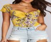 The flower power is yours! Get up and go for it in this bold bodysuit with all-over floral print. Suit features cap sleeves, a tie-front V neckline with cutout detail, and a thong-style bottom. Bodysuit slips on with no snap closure. Made from a mid-weight woven material with moderate stretch.