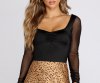 Dress up your everday look with this mesh sleeve bodysuit!