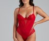 Get your boo to stop and stare at you in this sultry teddy! It features a sleeveless sweetheart neckline with a structured bust, adjustable spaghetti straps for a customized fit, an open lower back, and a sheer mesh fabric with dainty lace detailing. Style this teddy with denim and