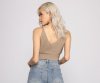 Keep it casually chic with a sleeveless knit crop top to create trendy outfits. The sleeveless top features a V-neckline and a cropped hem. The crop top is composed of a knit fabric that offers a relaxed fit. Complete look with the matching cardigan.