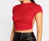 Show off some skin in this open-back top. The top features a comfortable crew neckline, short sleeves that offer a relaxed fit, and a sexy open back that shows off skin with a lower back bar strap tie. Pair this bold tee with
