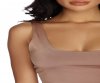 You'll be a total cutie in this simply stylish cropped tank. It features a sleeveless bodice, tank-like shoulder straps, a square neck and back, and a cropped hem.