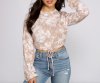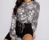Get drawn to this cute top that keeps you on-trend! The top features a crew neckline, a tie-dye print, long sleeves, and a cropped hem with a drawstring. Complete your look with