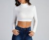 Keep it casual and chic with a crop top that is essential to your layered outfits! The top features a turtle neck, long sleeves, and a cropped hem. The top is composed of a ribbed knit fabric that offers a form-hugging fit with a moderate stretch. Complete look with mom jeans and a