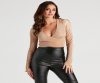 Graceful and poised, this rib satin top will inspire your inner ballerina! It features long bell sleeves, a V-neckline, and a surplice cropped hem with a wrap tie-back that lets you customize the style. Complete the look in a flirty