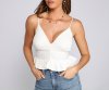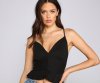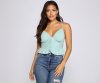 Add a flirty flair to your everyday look with this adorable crop top! It features a sleeveless V-neckline, adjustable spaghetti straps, and a cute ruffled peplum hem. Complete the outfit with