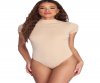 Keep it trendy and stylish with this cute knit bodysuit! It features a mock neck, cap sleeves, and a thong bottom with snap button closures. The ivory?bodysuit is composed of a knit fabric with plenty of stretch and a form-fitting style.