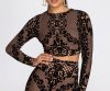 Achieve major style status in this chic velvet flocked crop! Pair with the matching midi skirt to complete the look.