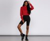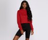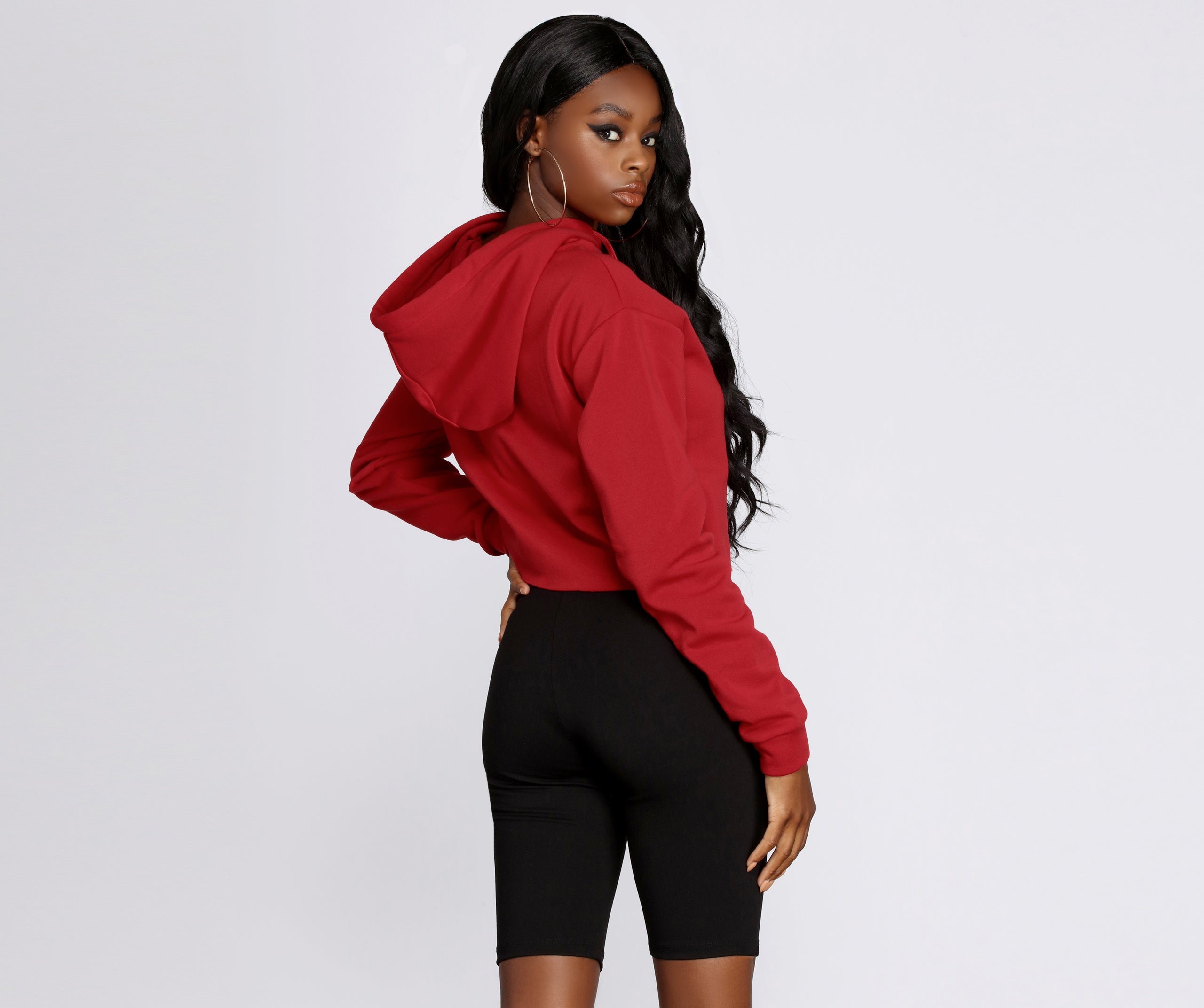 Keep it basic in this must have hoodie! It features a drawstring hood, long sleeves and a cropped hem with raw edge detail. Hoodie is composed of a fleece knit fabric that offers a relaxed fit with a moderate stretch.