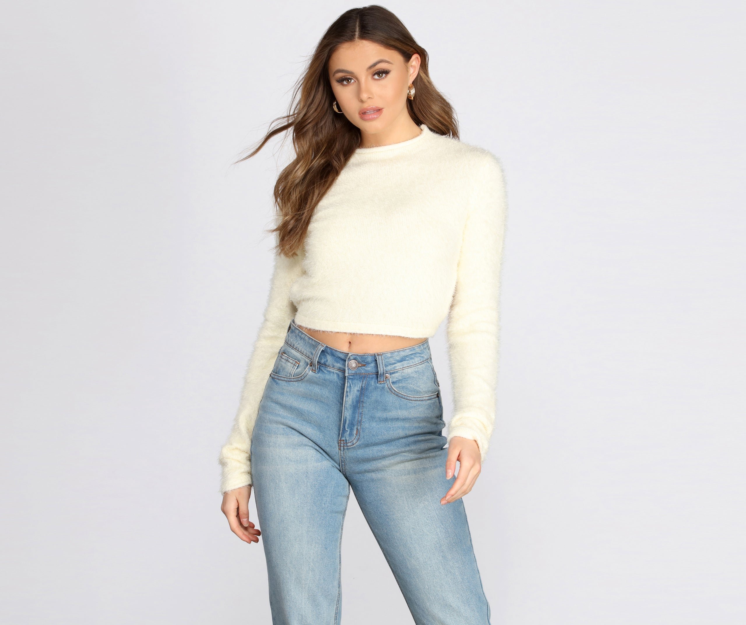 This trendy knit crop is sooo you babe! With its open back detail, this top is so versatile!