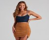 This denim corset is a rare find! It features adjustable spaghetti straps and a scoop neck with faux pearl and rhinestone trim, a cropped hem, and a back zipper closure. Complete the look in a faux leather