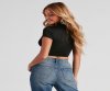 It won't be long until you reap the rewards of this mock neck top! It features short sleeves and a center front slit accent atop a fitted corset-style bodice on a cropped hem. Complete the look in a denim mini