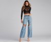 and distressed denim.