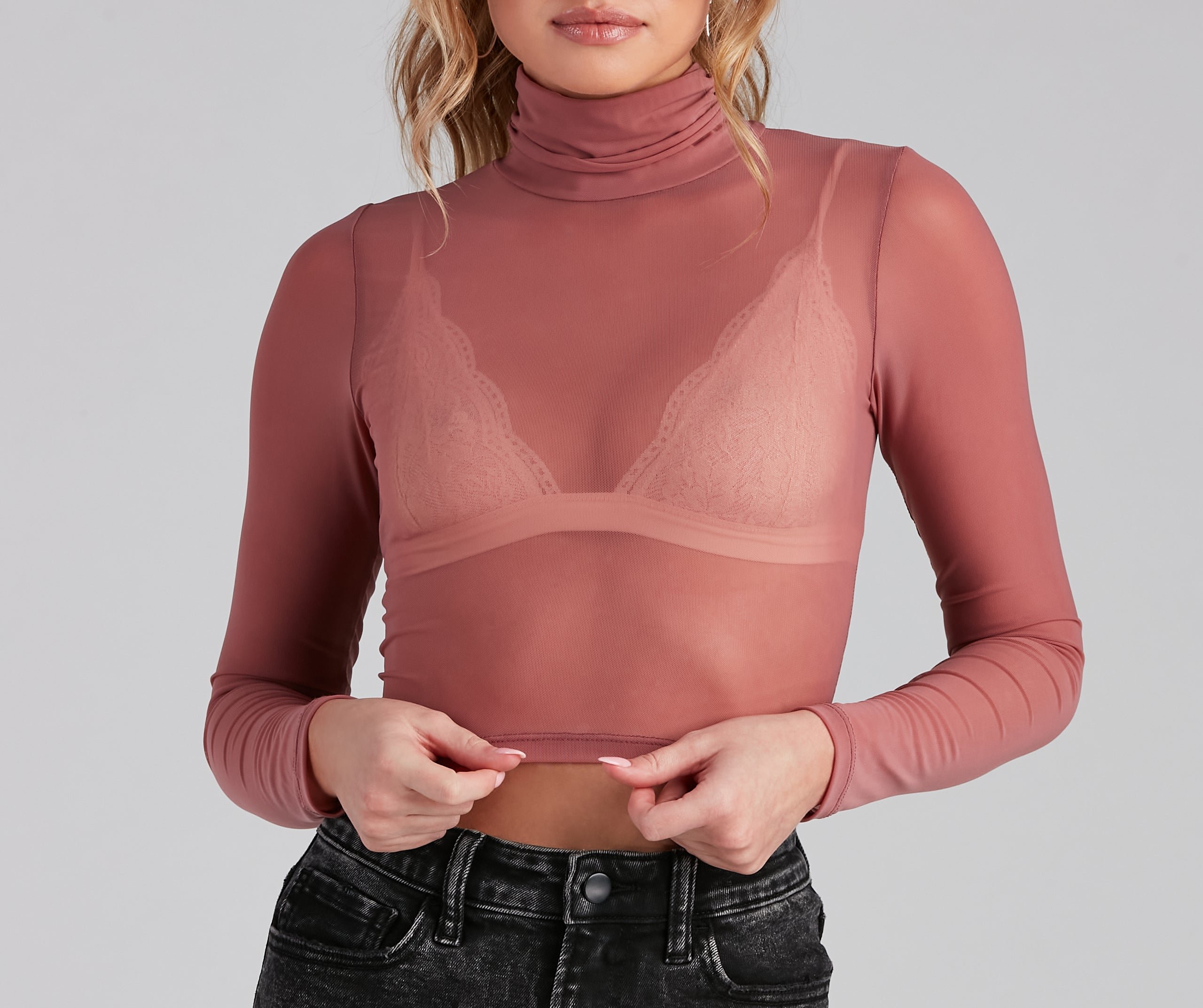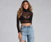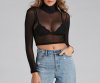 You'll have a stunning sheer moment in this on-trend crop top! It features a turtleneck, long fitted sleeves, a cropped, form-hugging fit, and is composed of chic sheer mesh fabric. Style this top with a