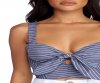 Get tied in trendy pinstripes to make a stylish look! This cute crop top features a plunging sweetheart neckline, a tie front accent, wide shoulder straps, a cropped hem and a smocked back. The all over blue background is complemented with narrow white pinstripes. Top is composed of a lightweight woven fabric that offers a form hugging fit with a minimal stretch.