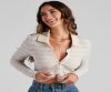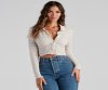 Keep your knits on point in this pointelle crop top featuring long sleeves, a collared neckline, and a button-down front. Complete the look in high-rise jeans and
