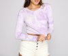 Showcase your stunning style in this trendy tie-dye crop top! It features a crew neckline, long fitted sleeves, and a cropped, form-hugging fit. The lightweight ribbed knit fabric offers plenty of stretch. Complete your look with