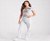 Play up an edgy style with this graphic crop tee perf pairing with your favorite denim! It features short sleeves, a cutout V-neck, a front graphic design with a script that reads, "Vintage Iron/High Performance", and a flirty knotted crop hem. Complete the look in