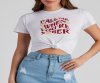 Let this sassy graphic tee speak for itself! It features a crew neckline, short sleeves, a cropped fit with an asymmetrical front hem you can tie into a knot, and a center script that reads "Call me when you're sober" with butterfly graphics. Style this cotton-blend tee with