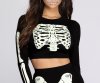 You're glowing from the inside, cutie! This spooky Halloween top has a crew neckline, fitted long sleeves, a cropped hem and a glow-in-the-dark applique. Be sure to pick up the matching leggings and accessories to complete your glow-in-the- dark Halloween costume!