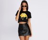 Give a little 'tude with this sassy little crop top! It has a crew neck paired with short sleeves and a cropped fit. The graphic tee is composed of a basic knit that offers plenty of stretch and features large melting gold lips printed across the chest.