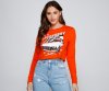 Go on the ride of your life in this long sleeve top! It features a crew neck, fitted long sleeves, a graphic script that reads, "Legendary Rider", and a relaxed fit and raw cropped hem. Show off your edgy style with this tee and