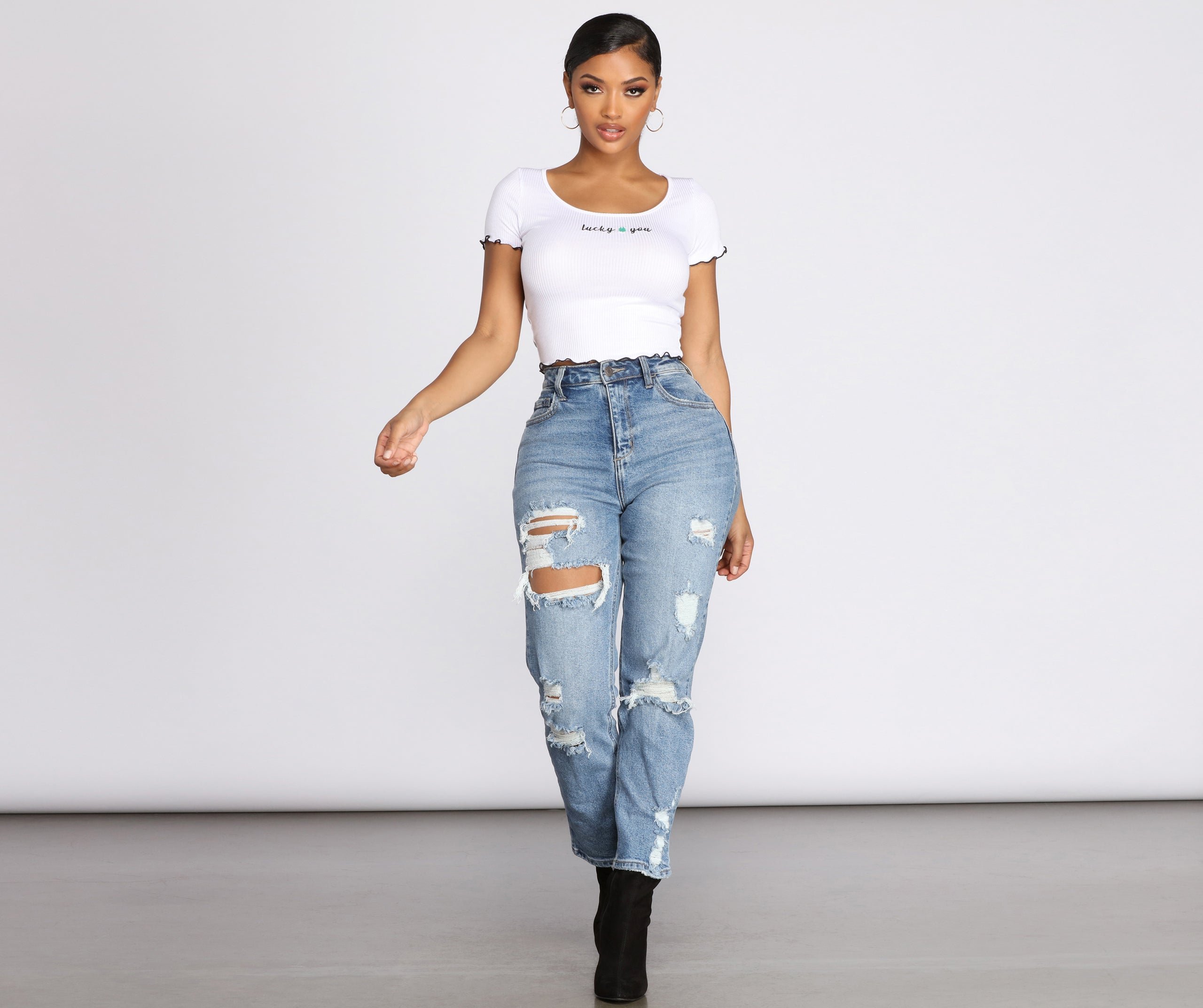 Well well well, aren't they the lucky ones! To be in the presence of a true cutie! Let 'em know with this sweet cropped top. Pair with high waist denim and sneakers or booties and go out to celebrate St. Patty's!